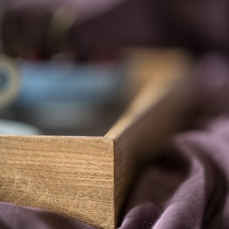 Unsere Tabletts werden aus sorgsam ausgewählten Hölzern und hochwertigen Materialien gefertigt. Für die farbigen Flächen der Böden verarbeiten wir Möbellinoleum vom Marktführer Forbo. Der Boden selbst besteht aus stabilem, edelfurniertem Schichtholz,